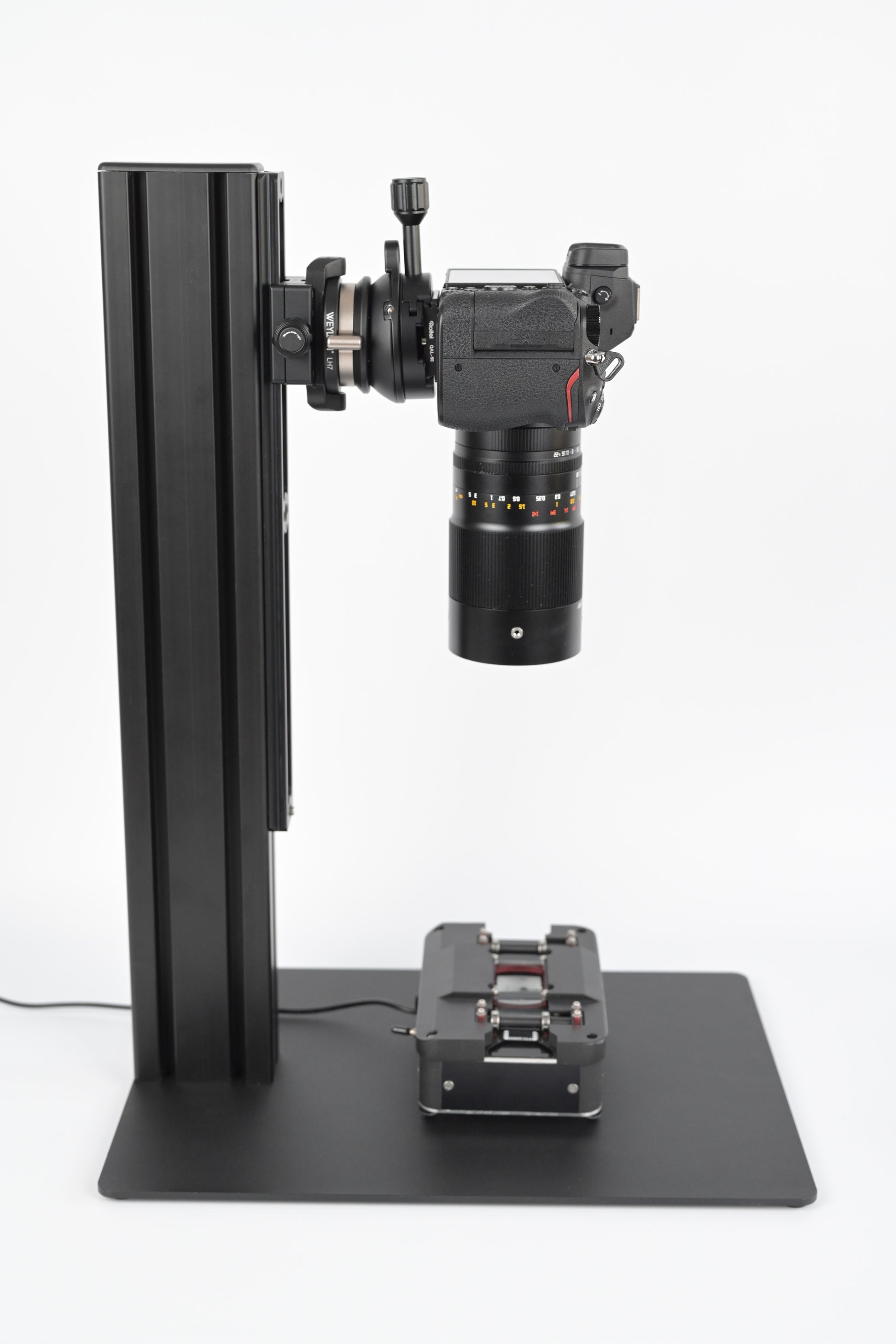 Featuring a minimalist design and robust construction, this camera stand is built for stability and economy. A solid 4mm steel base plate (4kg weight!) ensures a firm foundation, while the strong aluminum column provides dependable support. The steel plate is black powder coated which gives a sturdy and aesthetic finish. The modular setup is based on Arca-Swiss compatible components, allowing for flexible customization to suit individual needs. A robust tilt head enables accurate camera alignment for optimal results. The magnetic steel base plate offers the option to attach future accessories - such as cleaning brushes or the Autocarrier magnet base.